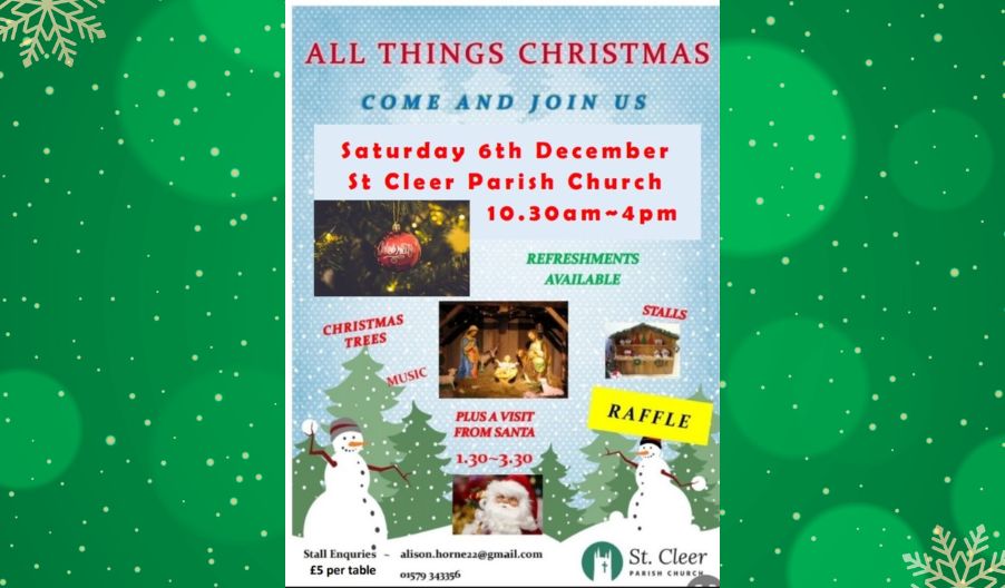 Come and join us for our All Things Christmas event. We have stalls, music, raffle and Santa is visiting.